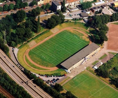 Schalke is the football club — founded in 1904, back when Gelsenkirchen was building itself on coal. The stadium was the heart of the city. First the Glückauf-Kampfbahn, then the Parkstadion where I watched matches as a kid, now the Veltins-Arena. That shape — the elongated oval, straight sides curving into half-circles at each end — wasn’t just architecture. It was where 70,000 people came together, where you belonged to something larger than yourself, where a working-class city found its identity.